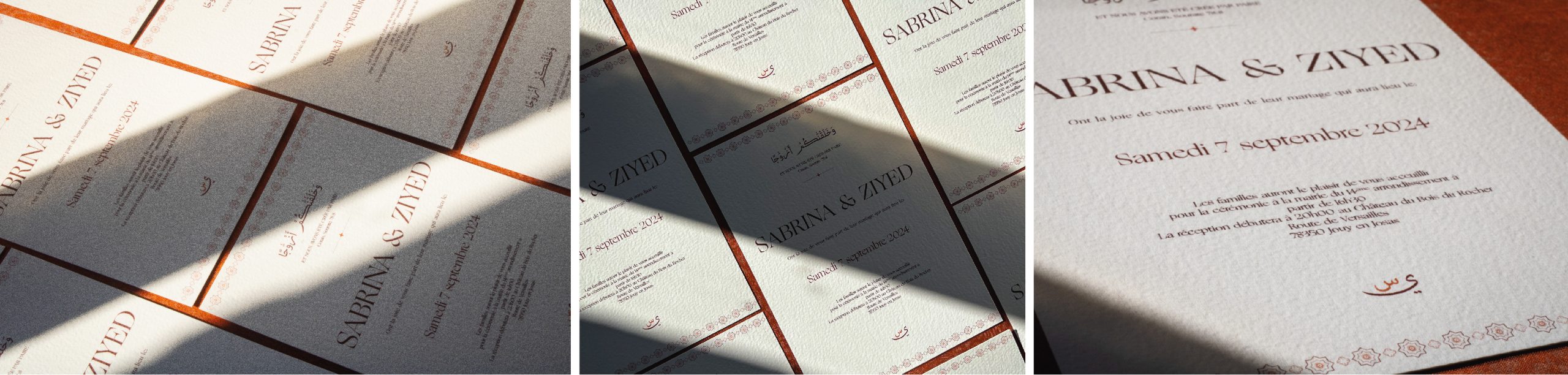 Chez Alif Studio, chaque détail compte et chaque invitation que nous concevons est imprégnée de notre passion pour l’art de célébrer. Chacune de nos collections est ancrée dans un univers distinct où l’authenticité et le sens du détail sont au cœur de notre démarche. Chaque création est 100% sur mesure, afin que chaque invitation que nous créons porte votre empreinte personnelle. Nous sommes ravies de vous accompagner dans tous vos événements: mariages, baptêmes, anniversaires, événements d’entreprise, pour faire de chaque moment un souvenir précieux et mémorable.